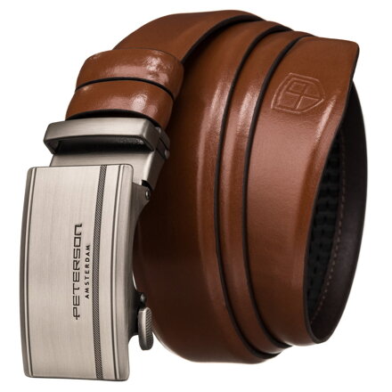 Brązowy pasek męski z automatyczną klamrą wykonany ze skóry naturalnej - Peterson