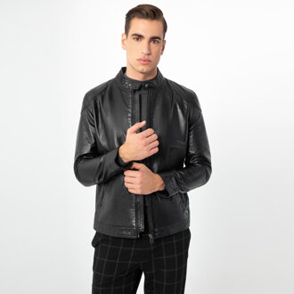 Męskie rękawiczki ze skóry naturalnej owczej czarne 39-6A-045-1
