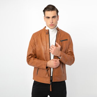Męskie rękawiczki ze skóry naturalnej owczej brązowe 39-6A-045-4