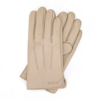 Ocieplane rękawiczki męskie ze skóry naturalnej beżowe 39-6L-308-9