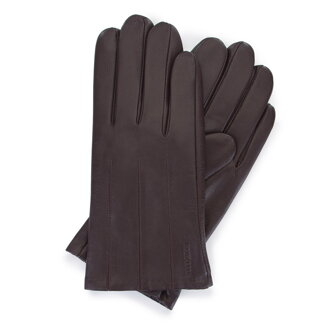 Męskie rękawiczki ze skóry naturalnej owczej brązowe 39-6A-045-4