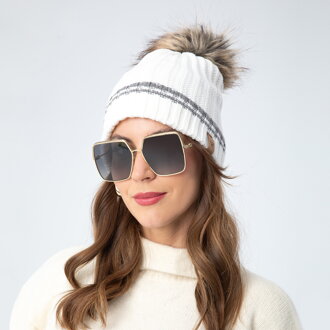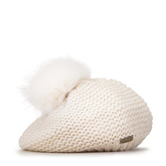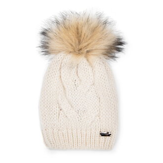 Czapka damska zimowa z pomponem ecru 101-HF-205-0