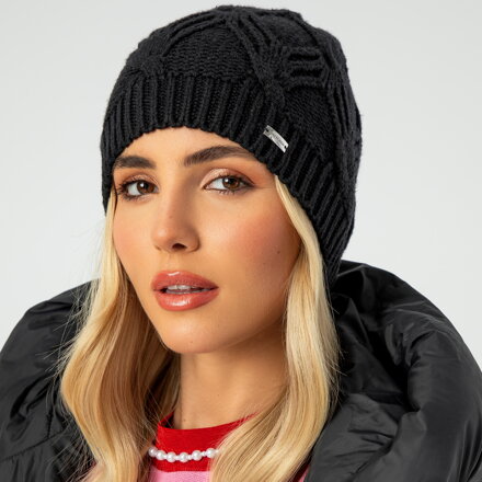 Czapka damska zimowa z cyrkoniami czarna 101-HF-204-1