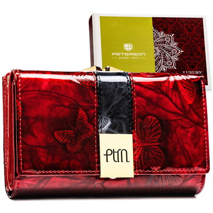 Portfel damski ze skóry naturalnej w czerwonym kolorze, zamykany biglem i zatrzaskiem - Peterson