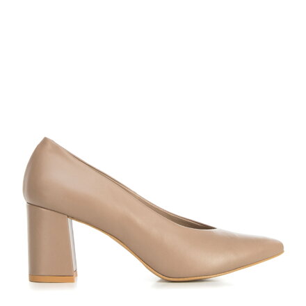 Damskie czółenka ze skóry z wycięciem na słupku ciemny beż 94-D-802-9 Čítajte viac