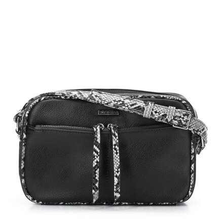 Klasyka w nowoczesnym wydaniu – z tą torebką przyciągniesz niejedno spojrzenie. Wykonana została z przyjemnej w dotyku skóry ekologicznej. Brzegi oraz pasek wykończone są fakturą lizard w kontrastowej kolorystyce. Ta listonoszka ma pudełkowy kształt i jest niewielka, ale zmieści wszystkie najpotrzebniejsze rzeczy takie jak: portfel, telefon, mały kalendarz, krem do rąk i kilka drobiazgów. Zabierz ją do kina, na spacer lub krótkie zwiedzanie – w każdej sytuacji modnie dopełni Twój strój. Damska listonoszka z obszyciem z ekoskóry o fakturze lizard to świetny wybór dla każdej miłośniczki oryginalnych dodatków.