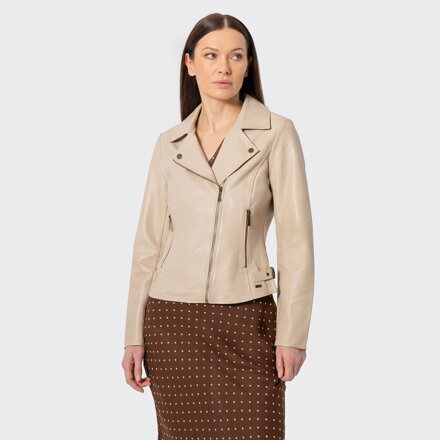 Kurtka, która od pierwszego założenia dodaje charakteru każdej stylizacji i sprawia, że czujesz się pewnie w każdej sytuacji. Wykonana z naturalnej skóry owczej zachwyca miękkością, szlachetną strukturą i dopracowanym wykończeniem. Taliowany krój subtelnie podkreśla sylwetkę, a ukośny zamek oraz ozdobne napy na kołnierzu nadają jej nowoczesny, lekko drapieżny wyraz. To ramoneska, która harmonijnie łączy luksusowy wygląd z codziennym komfortem – ponadczasowa inwestycja w styl na lata.