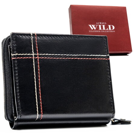 Skórzany portfel męski w czarnym kolorze z systemem RFID zamykany na zatrzask i suwak - Always Wild
