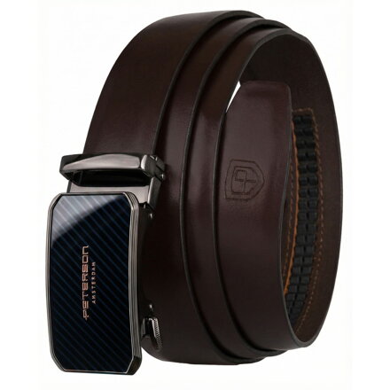 Pasek męski w ciemnobrązowym kolorze z automatyczną, czarna klamrą - Peterson