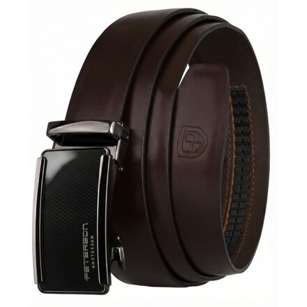 Elegancki, skórzany pasek męski w ciemnobrązowym kolorze z automatyczną klamrą - Peterson