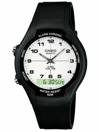Model AW-90H-7BV oferuje szereg przydatnych funkcji, w tym datownik, stoper, alarm oraz podświetlenie, które ułatwia odczyt czasu w warunkach słabego oświetlenia. Zegarek jest wodoszczelny do 30M (30 ATM), co oznacza, że zniesie zachlapanie wodą, choć nie jest przeznaczony do pływania. Dodatkowo, metalowa bransoleta z zapięciem typu push-button zapewnia komfort noszenia i trwałość.