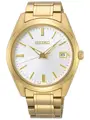 Seiko Quartz sú pánske hodinky, ktoré spájajú funkčnosť s luxusným dizajnom. Vyznačujú sa zlatým puzdrom a remienkom, ktoré v kombinácii s bielym ciferníkom vytvárajú elegantný a nadčasový štýl.