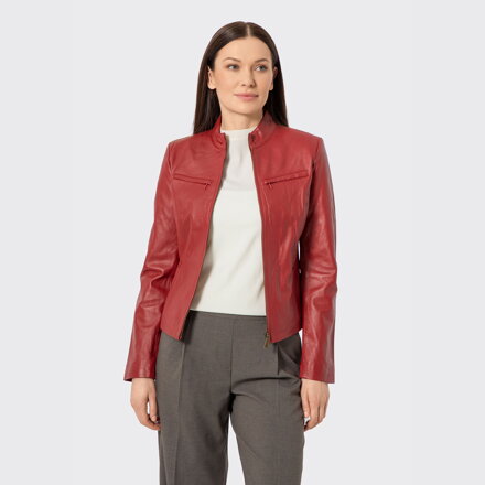 Dámska červená kožená bunda 100-09-801-3