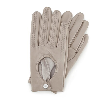 Rękawiczki samochodowe damskie ze skóry licowej ecru 46-6L-290-6A