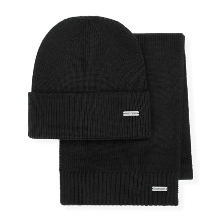 Klasyczny męski komplet: czapka i szalik czarny 101-SF-009-1
