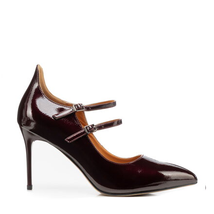 Damskie czółenka ze skóry lakierowanej na szpilce bordowe 101-D-955-3 Čítajte viac