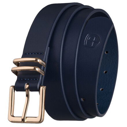 Wąski pasek damski ze skóry ekologicznej w granatowym kolorze ze złotą klamrą - Peterson Čítajte viac