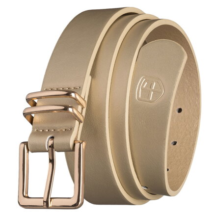 Beżowy, wąski pasek damski ze skóry ekologicznej ze złotą klamrą - Peterson Čítajte viac