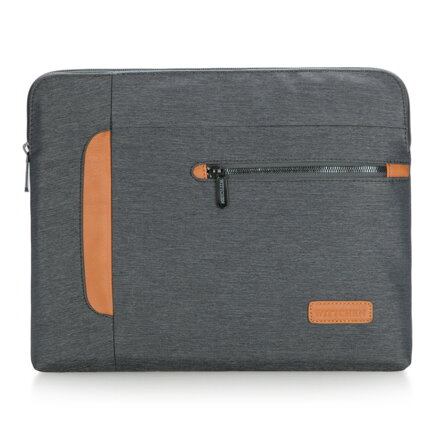 Szare etui na komputer przenośny o minimalistycznym fasonie, ale oryginalnym wykończeniu. Monochromatyczny nylon, który pokrywa całość etui zostały urozmaicony brązowymi wstawkami ze skóry ekologicznej, które spełniają funkcje estetyczne, a praktyczne akcesorium wyróżnia się dzięki temu również stylowym designem.