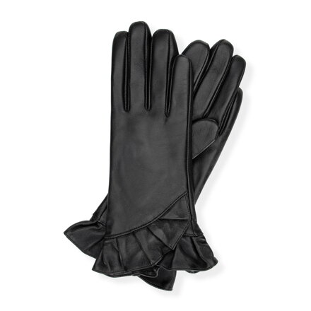 Damskie rękawiczki skórzane z dekoracyjną falbaną czarne 39-6L-032-1 Čítajte viac