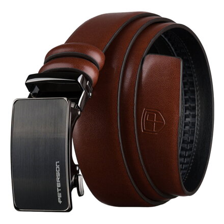 Pasek męski z automatyczną klamrą wykonany ze skóry naturalnej w brązowym kolorze - Peterson Čítajte viac