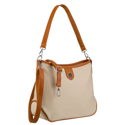 Praktyczna torebka damska z poliestru i skóry ekologicznej w kolorze ecru, zamykana suwakiem - Peterson