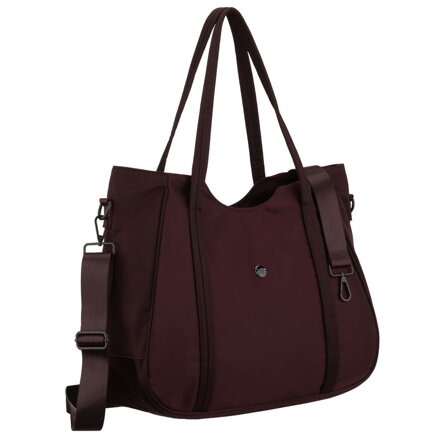 Bordowa shopperka damska z poliestru, jednokomorowa i zamykana suwakiem - Peterson